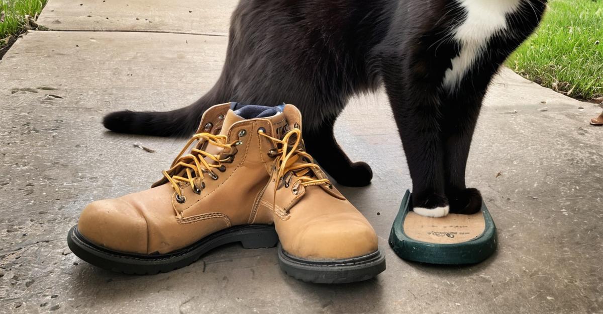 Oh boy, Blake… those boots were meant for hard work, not soft paws. Hope they’re still in one piece tomorrow! 😏 #CatsVsHumanStuff #ScratchThatWorkBoots