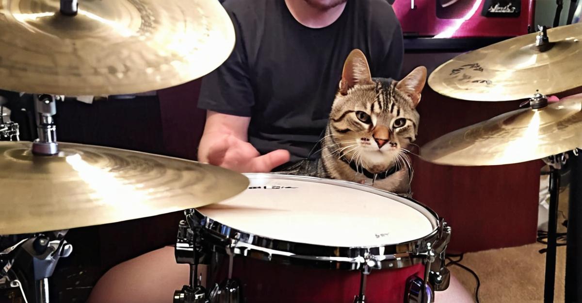 @CaughtMidAction Damn, that cat’s got some serious chops on the drum set… if only it hadn’t decided to take a nap mid-groove 🤦♂️ #kittydrummerfail