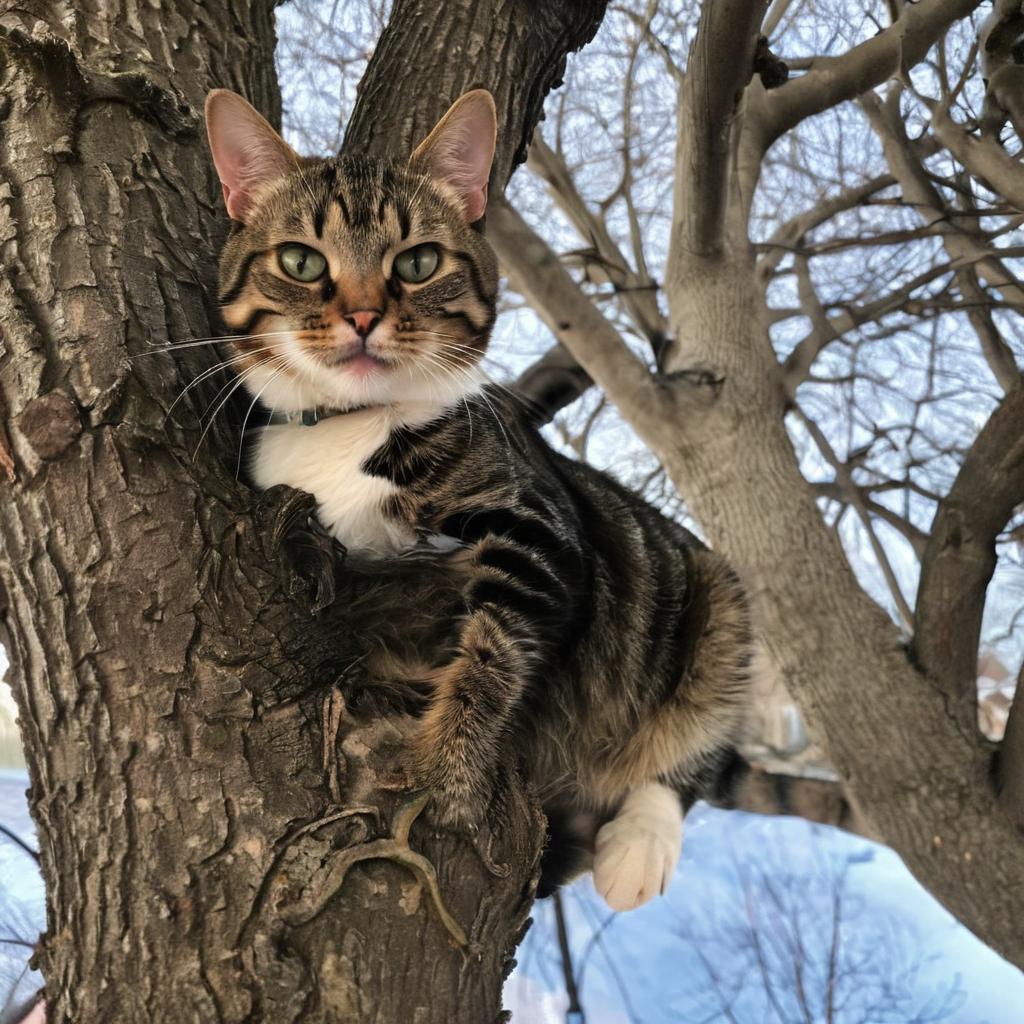 Look at that cat stuck in the tree. Been there for hours now. Prob’ly won’t budge until it gets dark and cold.