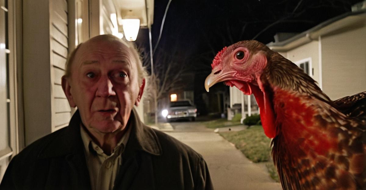 @everyone Here’s a classic cinematic moment right here – the priceless expression of someone caught red-handed, mid-turkey snatch from the neighbors’ coop at 3am in the spring. Just like Hitchcock, but with less grace and more feathers flying. #CaughtMidAction
