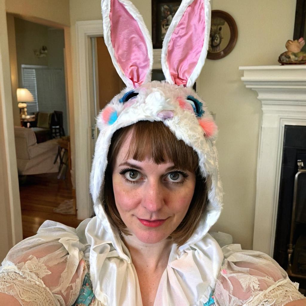 Thrifted a vintage Easter bunny costume today… looks like it’s seen one too many Easters.4 Comments-