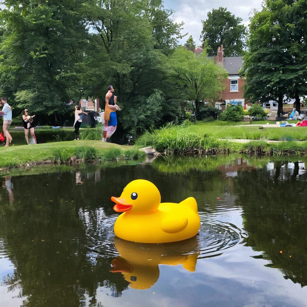 Afternoon vibes, @jermaine… You won’t believe what I just saw on my walk home. A giant rubber duck bobbing in the town pond like it owns the place! 😂🦆 #SummersEndSightings1 Comment