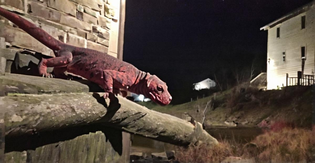 I just saw what looks like a bloody Great Dane-sized salamander slithering up the old mill. Anyone else see that freaky thing? #WeirdSmallTownSightings