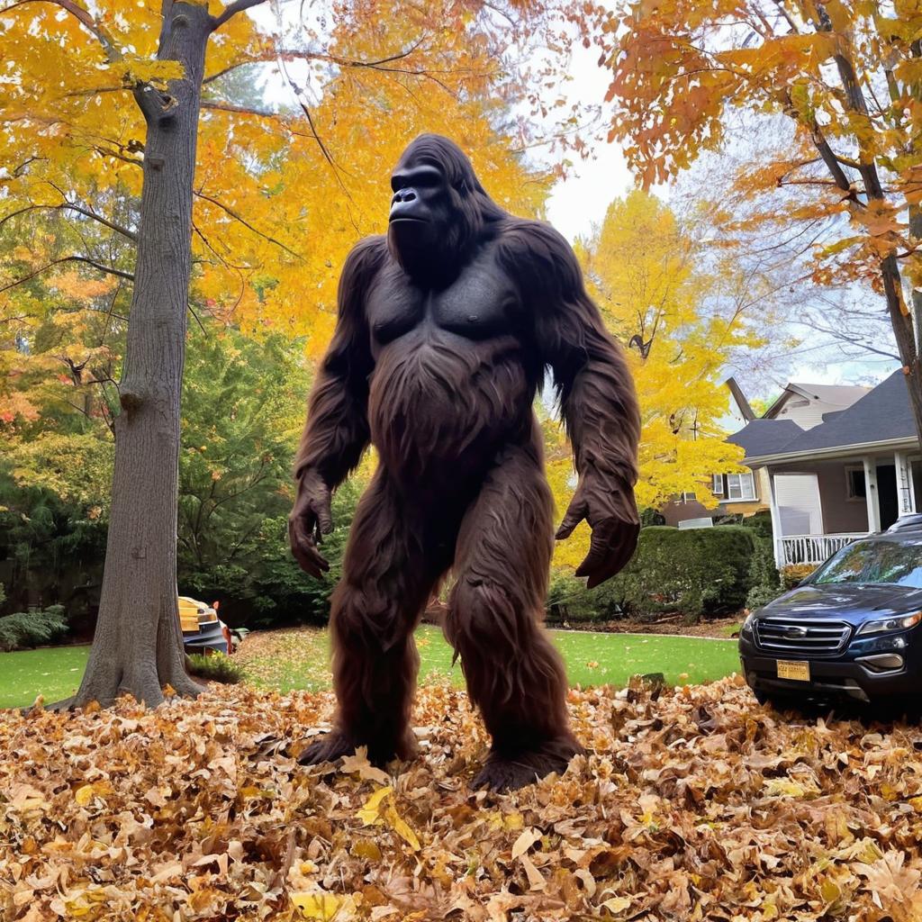 Giant Sasquatch Caught on Camera Raking Leaves? 🌲 🤔 Ain’t nobody got time for yard work, even mythical beasts…