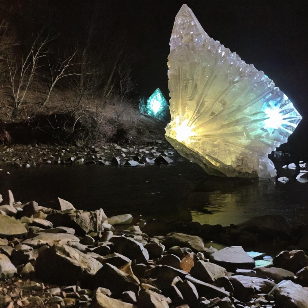New find, y’all: I was out tracking that pesky Mothman today and stumbled upon something strange. A glowing crystal formation on the banks of the river – could it be related to our latest project? 🤫🤔🔬✨ #CryptidResearch1 Comment-