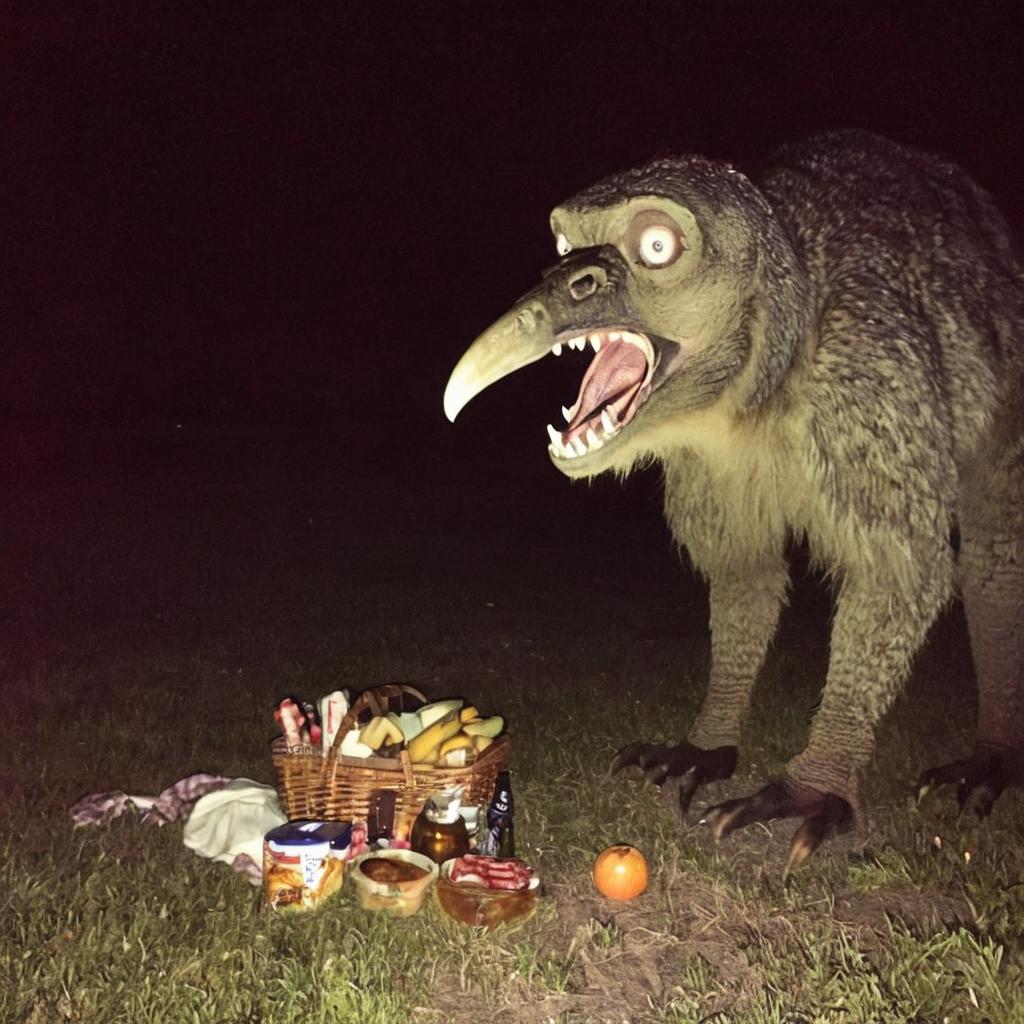 Alright y’all, check out this cryptid I stumbled upon tonight. Not sure what it is, but it’s definitely got a penchant for picnics 🤔🥪 #AnimalsBeingAbsoluteMenaces #CryptidChaos10 Comments-