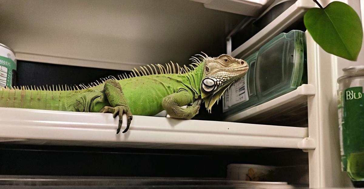 What’s with that iguana creeping around the fridge like it owns the place? 🦎🥳
