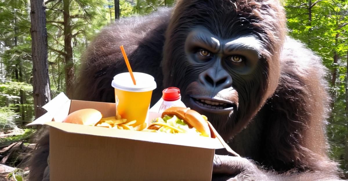 Cryptid researcher Miguel stumbles upon baffling sight: Bigfoot snacking on fast food in broad daylight 🍔 🚗 🏃♂️ #BreakingNews