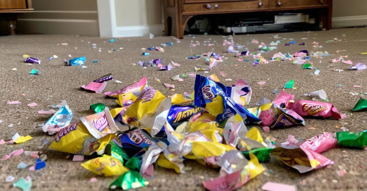 Easter candy wrappers cluttering the living room floor like confetti aftermath from a wild party… 🥚🤷♀️ @alan @arthur4 Comments